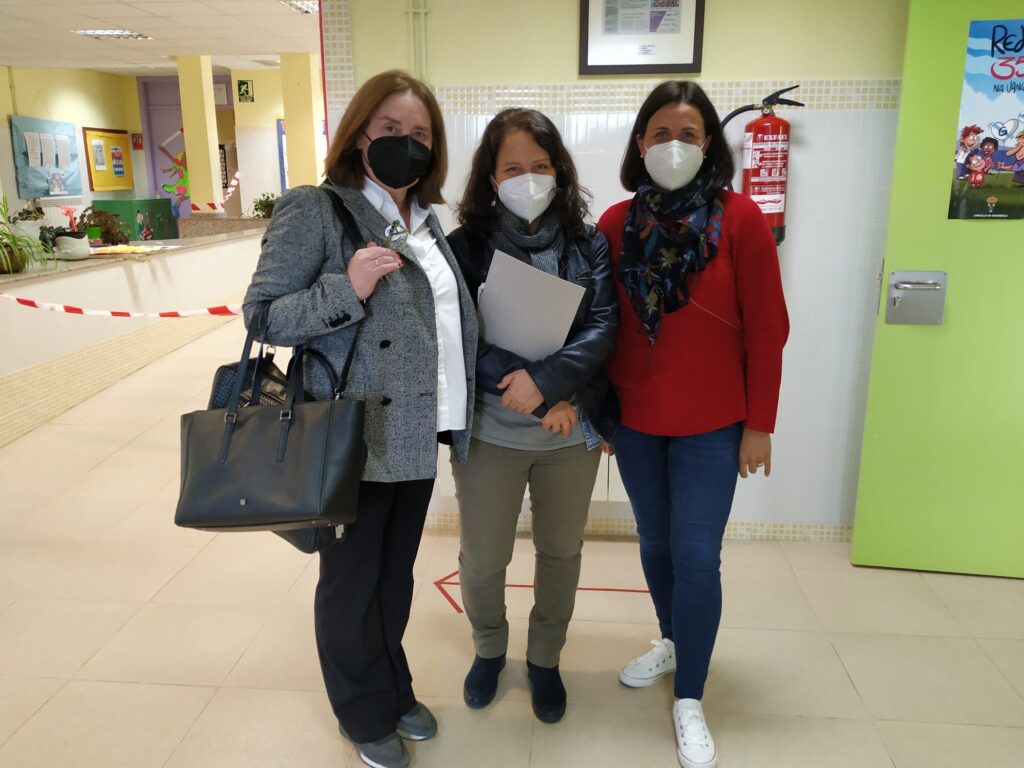 Sabela Gil, asesora da Secretaría Xeral de Política Lingüística e Isabel Valiño, coordinadora dos Equipos de Normalización de Lingua Galega de Pontevedra, visitaron o centro redondelán para darlles os parabéns polo premio.