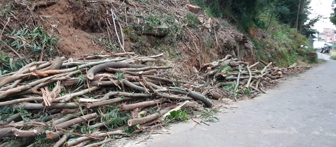 Responsabilizan do estado actual da vía as talas indiscriminadas efectuadas na contorna do río Fondón no pasado mes de xuño, onde maquinaria pesada arrasou con 4000 m2 de bosque. Debido o uso de camións e tractores de gran tamaño o asfaltado do camiño quedou completamente esnaquizado, ademais pedras e terra están a esvarar pola pendente da cal se eliminaron as arbores, caendo no camiño e facendo inda mais perigoso este tramo. Instan ao Concello a que faga as reparacións pertinentes e sinalice os tramos máis perigosos.