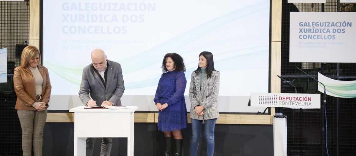 No acto, no que tamén se conmemorou o 50 aniversario do I Congreso do Dereito Galego, foron anfitrioas a presidenta da Deputación Carmela Silva e a deputada de Lingua María Ortega, que estiveron acompañadas do secretario xeral de Política Lingüística da Xunta de Galicia Valentín García, e do presidente da Irmandade Xurídica Galega, Xaquín Monteagudo, xunto a representantes de 35 concellos. Como relatoras falaron a maxistrada Ana Filgueira Paz, a representante da Irmandade e da FEGAMP Patricia Vilán, a avogada Ana Mosquera, e o responsable da asesoría xurídica do Concello de Pontevedra, Xavier Munaiz, municipio que xa realiza todos os seus trámites xurídicos en galego. Asistiron grande número de maxistradas e maxistrados entre os que se puideron recoñecer Ramón Villares ou Xesús Palmou, entre outros.