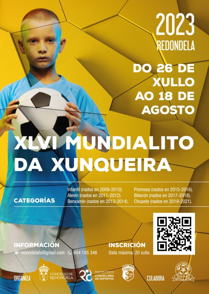 Un ano máis, e van xa 46, a pista da Xunqueira acollerá a finais deste mes o Mundialito de Fútbol Sala en categorías inferiores que organizan o Redondela FS e a Concellería de Deportes en colaboración con Casa Paco 81. A competición nas categorías de cadete e sénior está xa en marcha, cun grande éxito de participación e de público. É xa unha cita indispensable no verán de Redondela que vai máis aló dun torneo deportivo e que está consolidado como un evento social na vila.