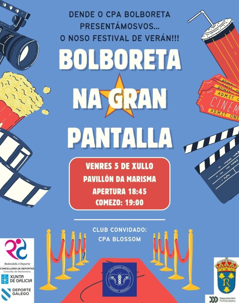 O festival de verán do Club de Patinaxe Artística Bolboreta celébrase o venres 5 de xullo no Pavillón da Marisma a partir das 18:45 horas da tarde e ten como clubs convidados ao CPA Blossom de Mos e CPA Arealonga. Este ano recibe o título de “Bolboreta na gran pantalla”, coa intención de representar o estilo e a temática das coreografías sobre patíns que xirarán en torno a grandes clásicos do cinema.