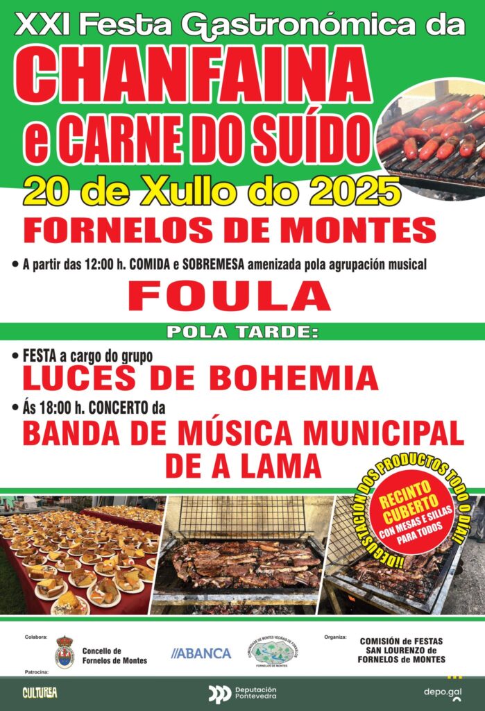 Fornelos de Montes acolle este domingo día 20 unha nova edición da súa festa gastronómica dedicada á carne do Suído. Uns pratos elaborados de xeito artesanal con carne de animais criados en liberdade que se poderán degustar nunha cómoda carpa e a prezos populares que van do 5 aos 8 euros.