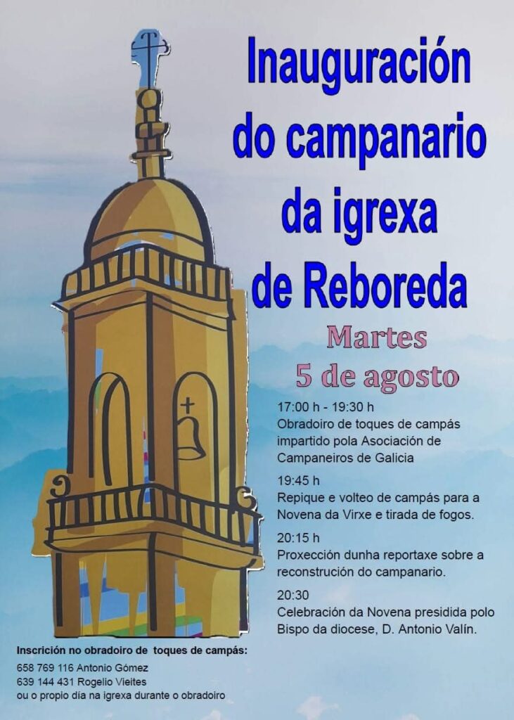 A parroquia de Santa María de Reboreda vivirá hoxe, martes 5 de agosto, un día de festa coa inauguración do seu campanario, restaurado tras os graves danos sufridos polo impacto dun raio en marzo de 2022. Coincidindo co inicio da novena en honra á Virxe María, patroa do templo, a comunidade parroquial reunirase para celebrar este fito, que devolve o esplendor a un dos elementos máis emblemáticos desta igrexa barroca do século XVII.