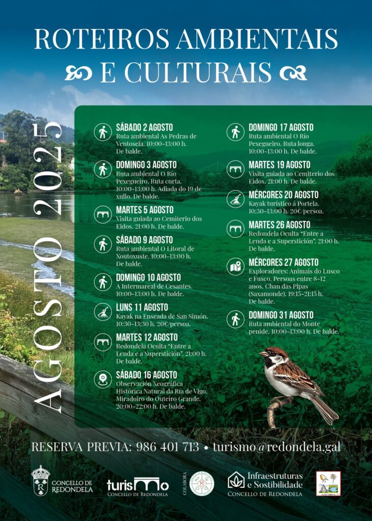 Estas actividades forman parte dunha ampla oferta de ecoturismo e sostibilidade organizada polos departamentos de Turismo, Sostibilidade e Medio Ambiente do Concello de Redondela, pensada para todos os públicos. Para participar, é necesario inscribirse previamente na oficina de turismo, chamando ao 986 40 17 13 ou enviando un correo a turismo@redondela.gal.