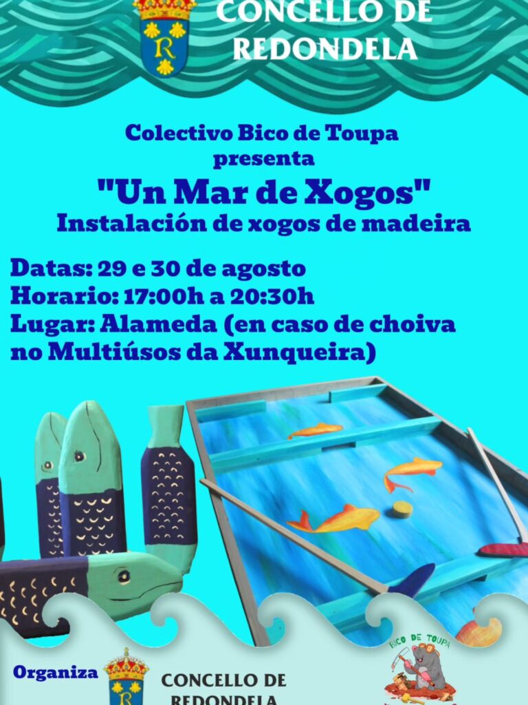 O Multiusos da Xunqueira transformarase, este venres e sábado, nun espazo de diversión para todas as idades coa instalación “Un Mar de Xogos”, unha proposta do colectivo Bico de Toupa que combina artesanía, creatividade e compromiso coa cultura mariña. A actividade, encadrada na programación do Concello, desenvolverase entre as 17:00 e as 23:00 horas.