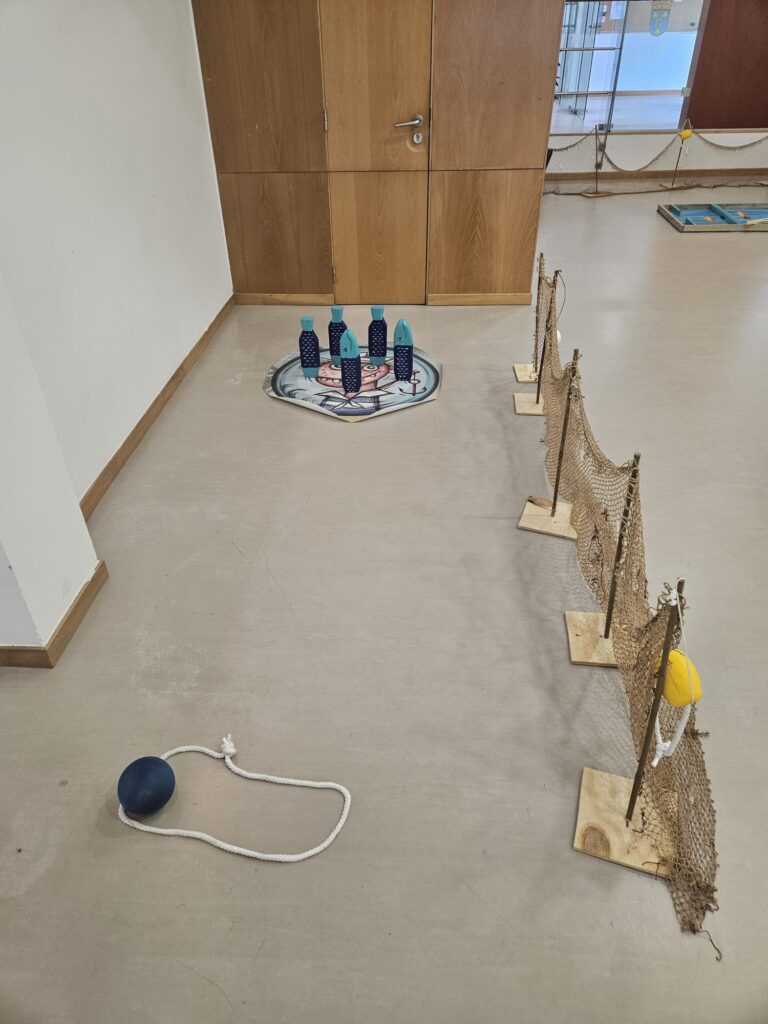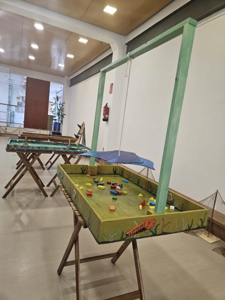 Entre os xogos, destacan propostas como Peixelín, un futbolín con peixes como protagonistas; Cruzar o charco, que require habilidade para lanzar cunchas; O equilibrio da raia, un desafío de equilibrio; ou Surfeiro, onde a puntería é clave. Algúns xogos están pensados para a primeira infancia (de 1 a 4 anos), como a área de construción con pezas Kapla, mentres outros, como Río arriba ou Pesca sostible, están deseñados para todas as idades. “Temos dúas áreas: unha para os máis pequenos, con xogos que estimulan o tacto e a creatividade, e outra con propostas para compartir en familia, como botar unha partida de hóckey ou devolver peixes ao mar cunha cana”, detalla Crespo.
