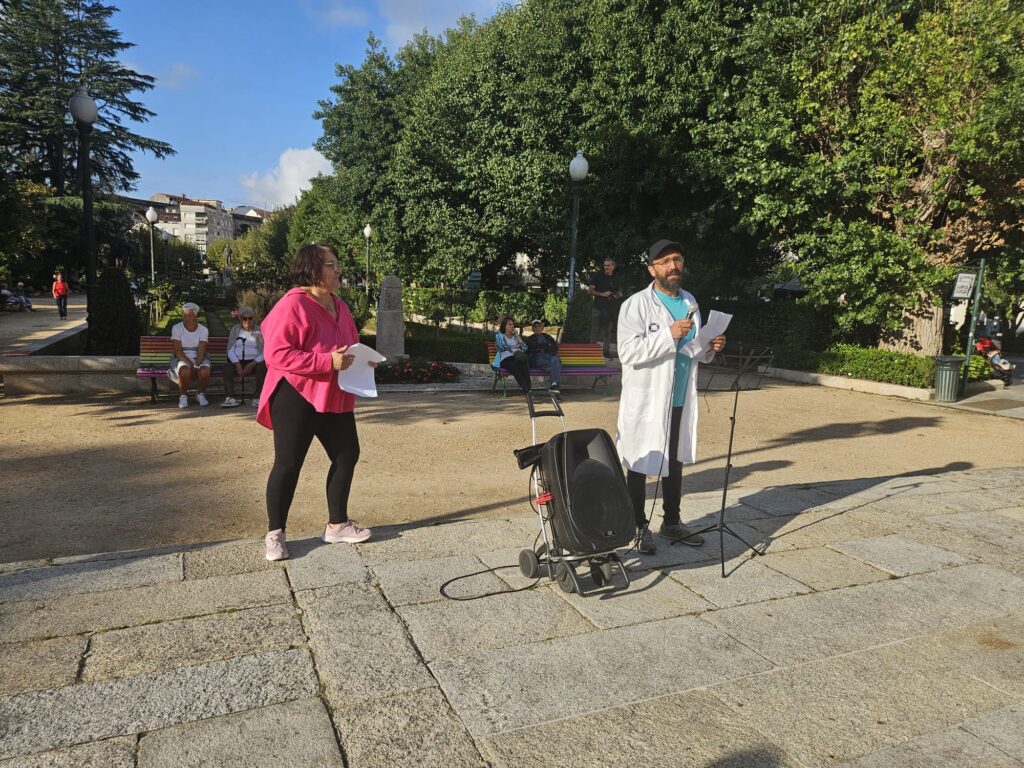 Na concentración, a plataforma leu un manifesto que resumiu as súas demandas: “Estamos aquí para denunciar alto e claro a nosa verdade: o sistema de saúde pública taménase. Recibimos un servizo cada vez peor, con citas que se demoran dez días con sorte, sen pediatras, con profesionais de vacacións sen substituír. Temos que contar as nosas doenzas a persoal non médico, ás veces diante doutros pacientes, vulnerando a nosa intimidade. Isto parece deseñado para convencernos de ir á privada, pero non o imos aceptar. O público é servizo, o privado é beneficio”.