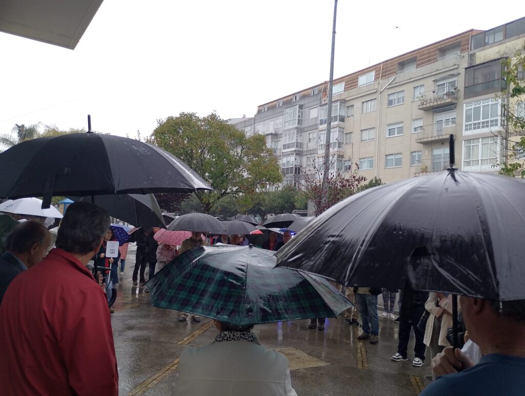 A chuvia marcou a concentración que ás 11:00 horas da mañá de hoxe se celebraba ás portas do Centro de Saúde de Chapela. Unha vez máis os manifestantes, convocados pola Plataforma pola sanidade pública de Redondela, reclamaron ao Sergas que se corrixan as carencias no servizo para garantir unha atención sanitaria completa nos centros de Chapela, Pazos, Fornelos e Redondela.