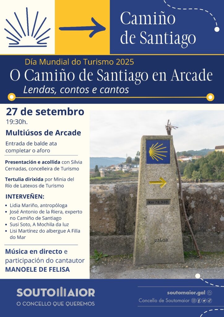 Representantes turísticos locais e expertos do sector abordarán este sábado 27 de setembro no Multiúsos de Arcade os efectos do turismo e a potente repercusión do Camiño de Santiago para a economía local. Con máis de 200.000 persoas cruzando ou facendo parada no municipio, a Concelleira de Turismo, Silvia Cernadas salientaba a necesidade de reflexionar sobre o turismo e o seu desenvolvemento sostible.