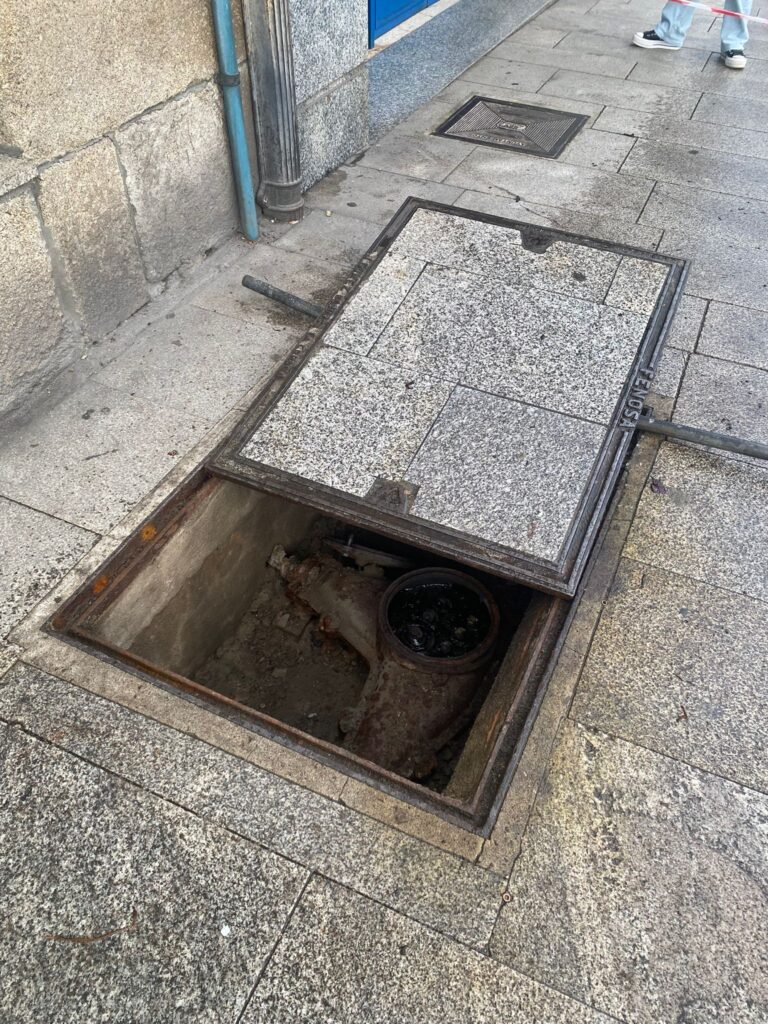 Enorme susto o que se levaban na xornada de onte os residentes e peóns que ás 16:20 horas se atopaban nas proximidades da rúa Xeneral Rubín cando se producía unha explosión baixo unha tapa de rexistro da beirarrúa, diante da Farmacia Andrea Domínguez. A explosión e o posterior lume debeuse a un fallo eléctrico do cableado que discorre por debaixo da beirarrúa e deixou tamén unha estela de fume de cor laranxa que preocupou á veciñanza.