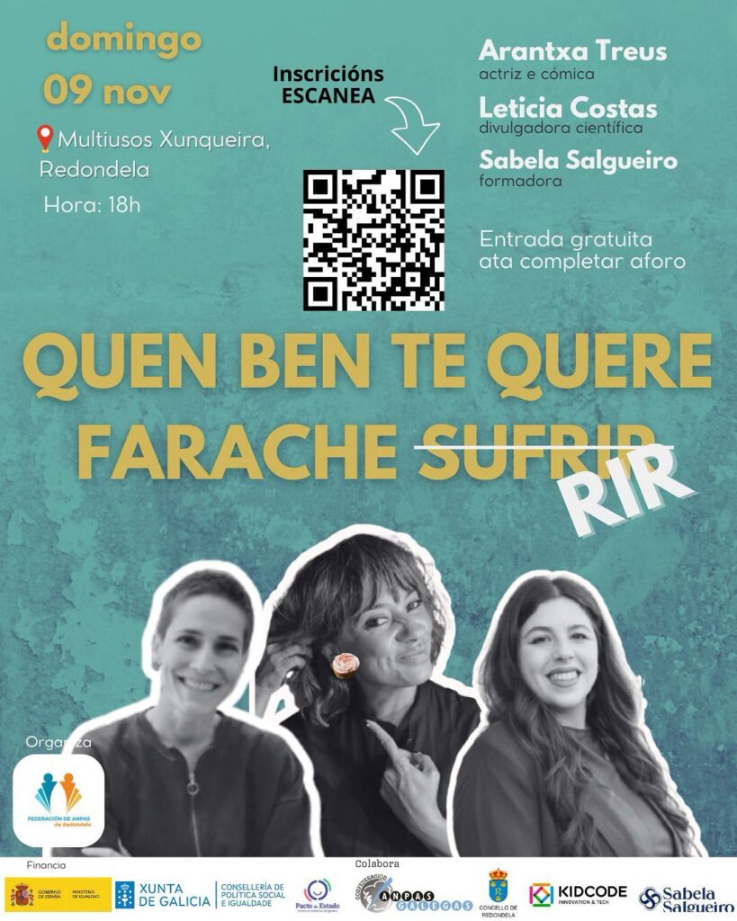O espectáculo “Quen ben te quere farache rir” é unha actividade que convida a pensar sobre como deberían ser as relacións persoais para que sexan sans e baseadas no respecto mutuo, todo isto cunha boa dose de humor e complicidade co público.