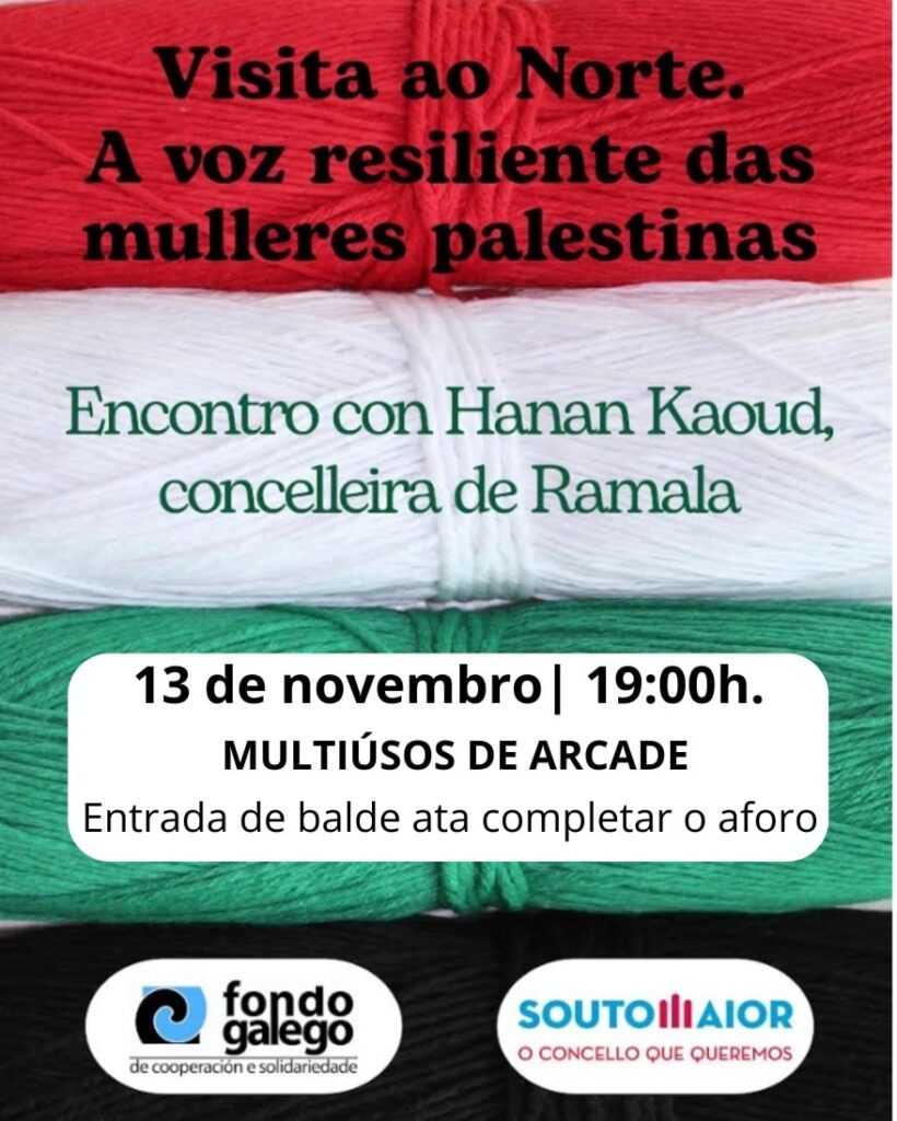 Baixo o título “A voz resiliente das mulleres palestinas” o evento busca visibilizar a grave situación que atravesa Palestina, denunciar a ocupación e as violacións de dereitos humanos, promover a solidariedade internacional e reforzar o compromiso dos concellos galegos cunha paz duradeira, apoiando a axuda humanitaria e combatendo a desinformación sobre o conflito.