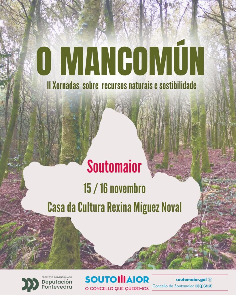 A Casa da Cultura Rexina Mïguez Noval acolle o sábado 15 e o domingo 16 de novembro as II xornadas sobre recursos naturais e sostibilidade que organiza o concello de Soutomaior e que contará con persoas expertas para debater sobre a xestión sostible dos montes, a resposta ante os grandes incendios forestais e as boas prácticas para unha xestión racional dos montes e un aproveitamento sostible dos recursos. A programación inclúe actividades variadas como coloquios, saídas micolóxicas, obradoiros, magosto e música.