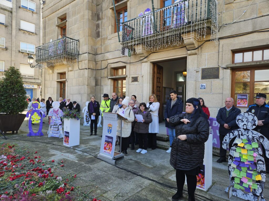A lectura da Declaración Institucional correu a cargo de Soledad Chayán, recoñecida este ano como “muller exemplo de emprendemento e compromiso con Redondela”. As súas palabras foron claras e rotundas: “A violencia machista non é un problema privado nin individual, senón unha cuestión estrutural que afecta á sociedade no seu conxunto. Non entende de fronteiras, idades nin condicións: afecta a todas as mulleres polo simple feito de selo e constitúe unha vulneración inaceptable dos dereitos humanos. Por iso esixe unha resposta firme, colectiva, unánime, continuada e global. O lema deste ano —Ante a violencia machista, resposta universal— reclama a implicación das institucións, das administracións, das familias, da cidadanía e, sobre todo, unha resposta colectiva desde o compromiso de todas e todos”.