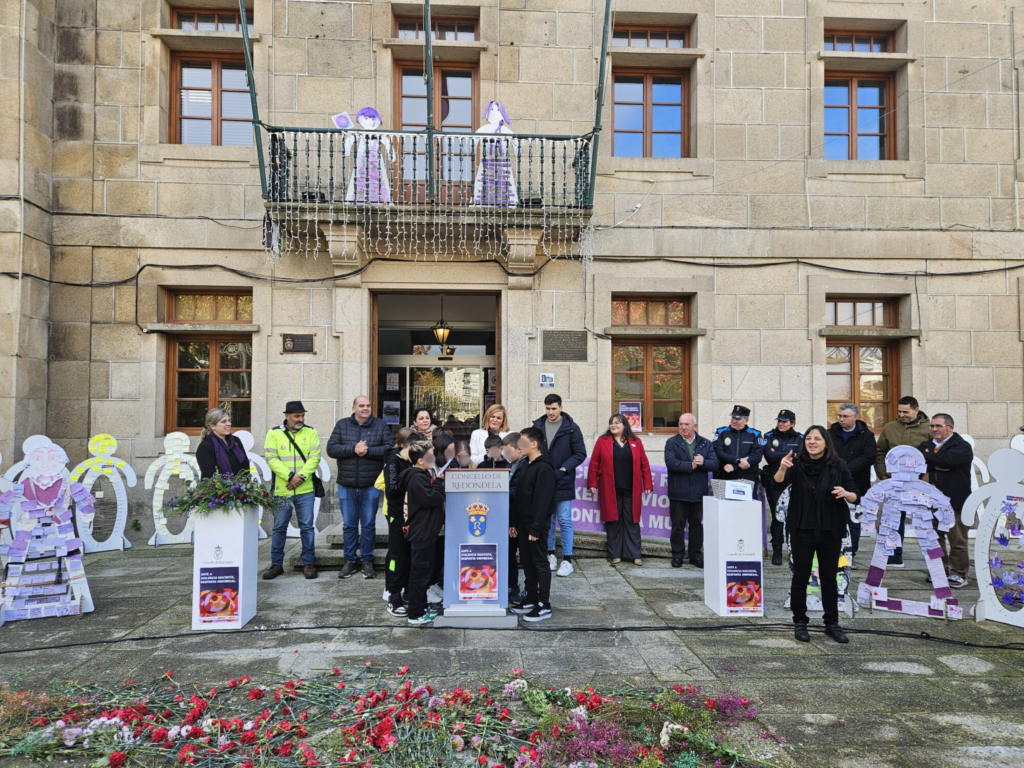 A praza do Concello de Redondela acolleu este mediodía o acto institucional polo Día Internacional da Eliminación da Violencia contra as Mulleres. Baixo o lema da campaña “ante a violencia machista, resposta universal”, o Concello de Redondela reafirmou o seu compromiso coa loita contra a violencia machista nun evento que reuniu a veciñanza, asociacións, centros educativos e entidades sociais.