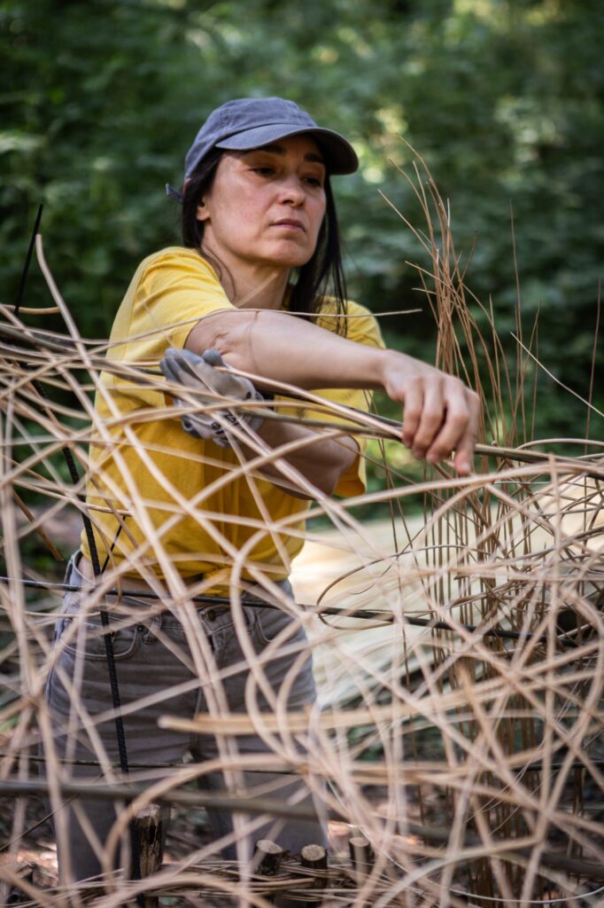 Esa volta supuxo un punto de inflexión creativo. “En Barcelona facía unha artesanía máis de guerrilla, con materiais reciclados e o que tiña á man. Aquí levo todo o ano formándome en Chantada con fibras vexetais, plantando vimbio e traballando, por exemplo, co castiñeiro desde a plantación ata a peza final. Definitivamente cambia o proceso e aumenta o valor engadido”, explica.