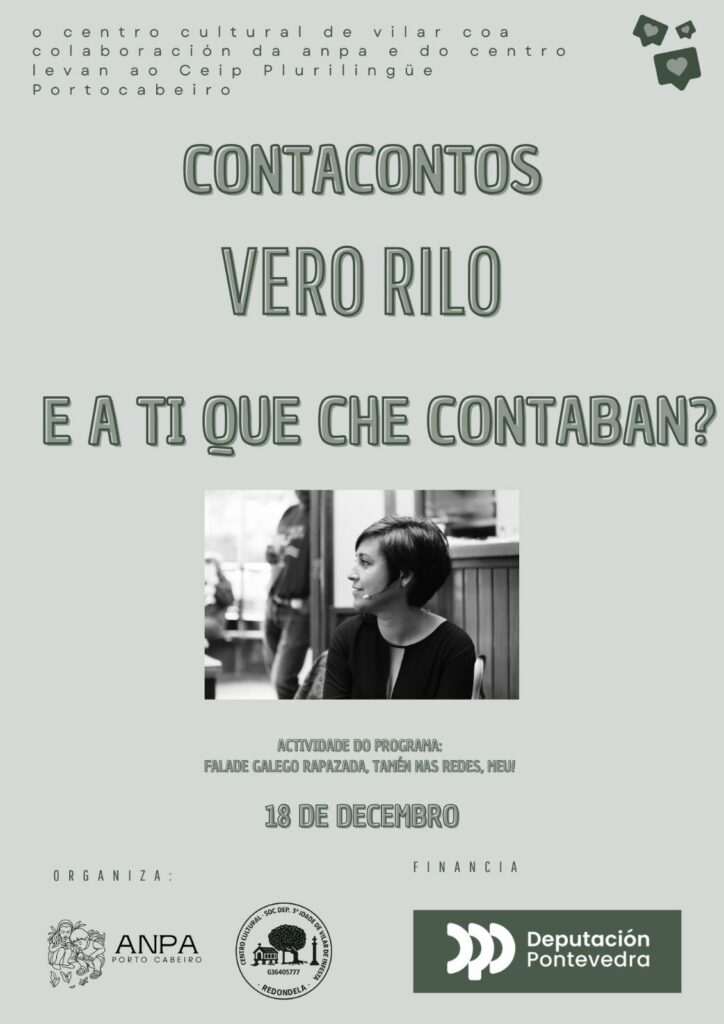 Ademais, dentro deste programa, o 18 de decembro a narradora e mestra Vero Rilo ofrecerá un espectáculo de contos e xogos tradicionais “E a ti que che contaban?” no CEIP Plurilingüe Portocabeiro, achegando aos máis pequenos á memoria familiar e á importancia de transmitir a herdanza cultural en galego.