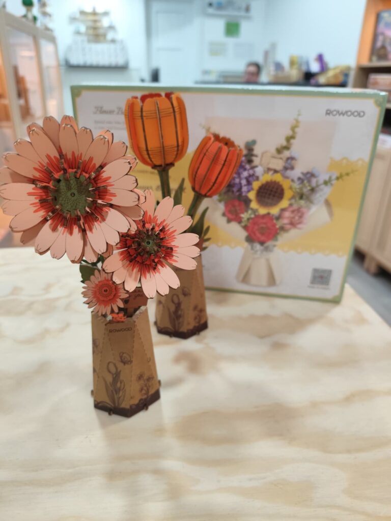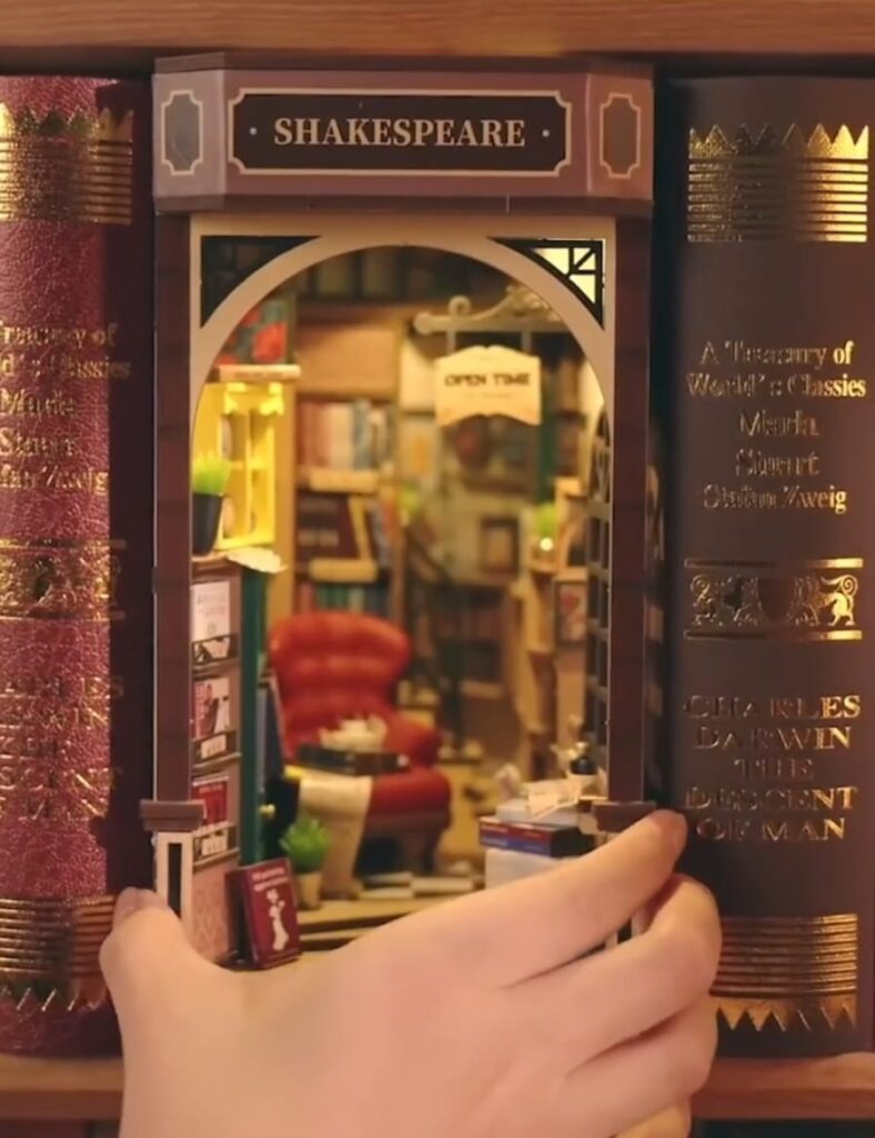 - Maquetas de madeira: reloxos, miniatura dunha imprenta para antiga, librarías en miniatura con luz LED (algunhas inspiradas en Shakespeare), temas de Star Wars, flores eternas (como a sakura xaponesa) ou escenas románticas. “Quedan preciosas na estantería e non necesitan auga”, bromea Andrea. Prezos accesibles (moitas a partir de 10 €) e perfectas para tardes de peli e manta.