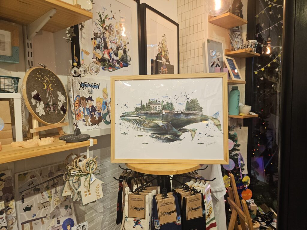 - Láminas ilustradas, como a fermosa lámina dunha balea de Alba Casanova, ilustradora redondelá afincada en Valencia: arte delicada e chea de personalidade que pode encadrarse ou regalarse tal cal.
