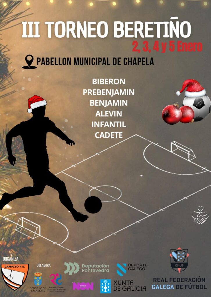 O Pavillón Municipal Manuel González Soto (Chapela) será o escenario da terceira edición do Torneo Beretiño de fútbol sala base, organizado polo club Campito Chapela FS. O evento, que se desenvolverá entre os días 2, 3, 4 e 5 de xaneiro, reune a un total de 47 equipos procedentes de ata 28 clubs diferentes das catro provincias galegas, adquirindo nesta ocasión un carácter internacional coa participación do Vitoria Guimarães de Portugal.