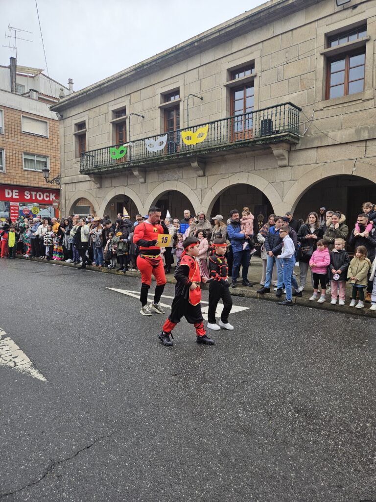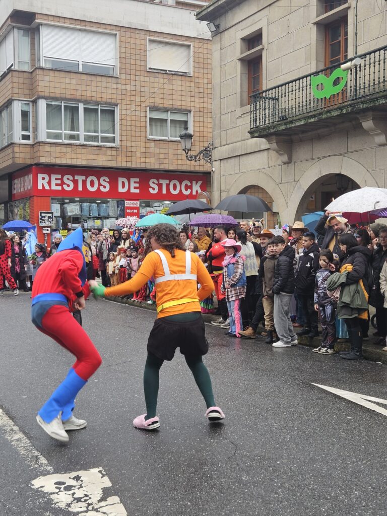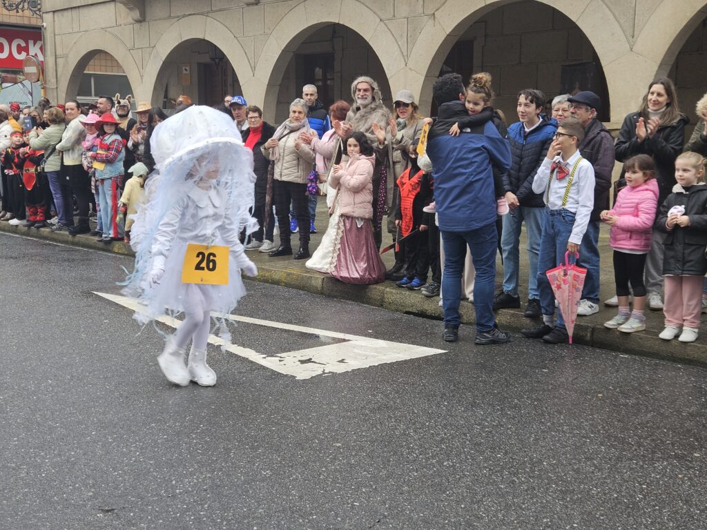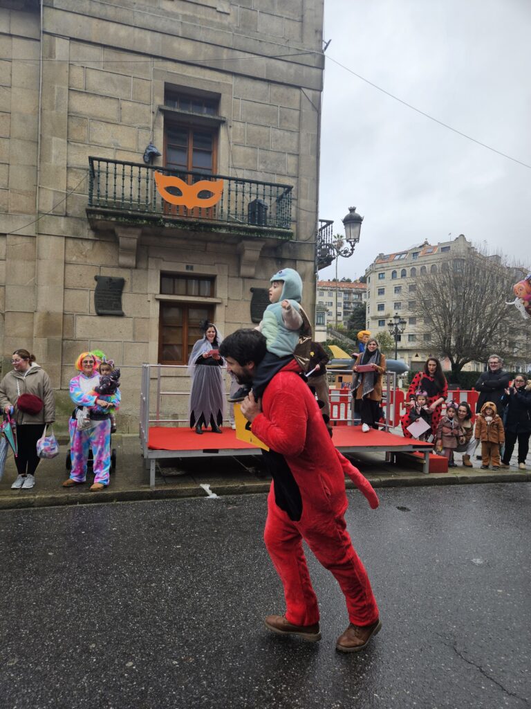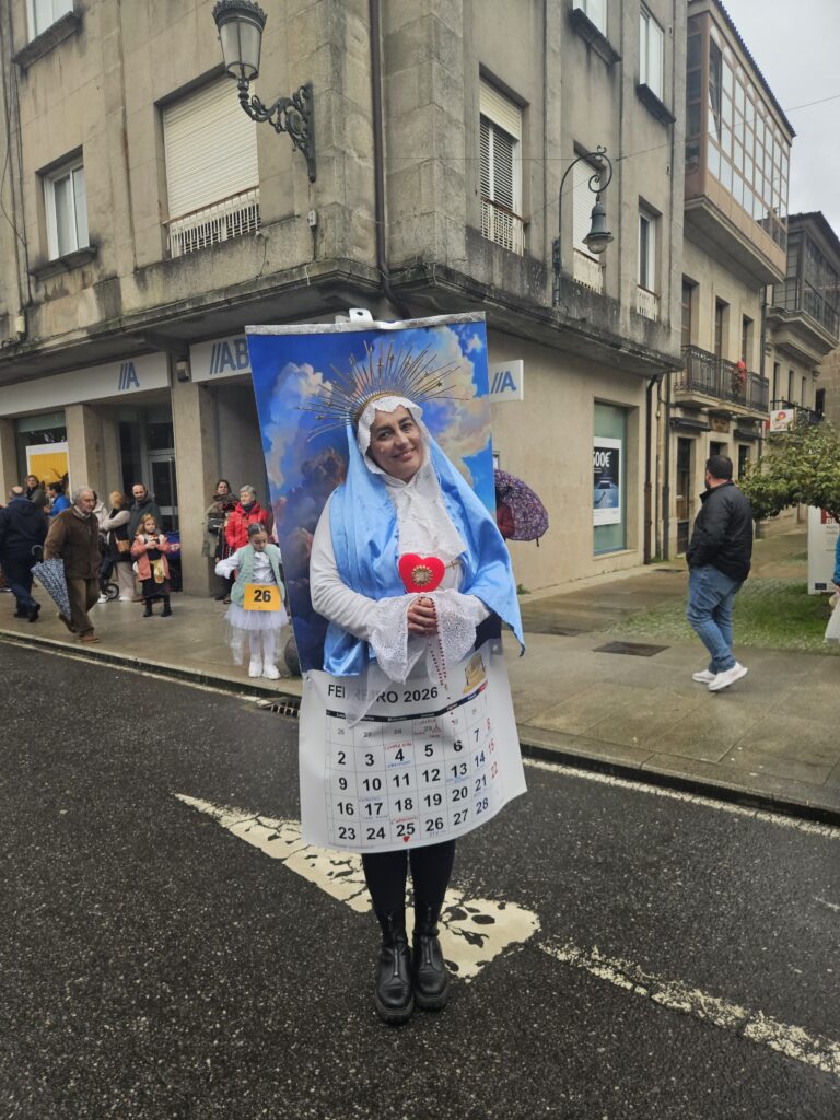 O martes de Entroido, Redondela celebrou un dos días centrais da festividade, cunha xornada marcada pola participación masiva de veciños e veciñas de todas as idades. O programa comezou ás 16:00 h coa apertura de inscricións nos soportais do Concello. Ás 17:00 h deu comezo o Desfile-Concurso de Disfraces, que contou con dúas modalidades principais: individual e colectiva (incluíndo parellas e grupos). O percorrido encheu de cor e creatividade as rúas do centro, mentres que na Alameda Castelao se desenvolveron talleres infantís entre as 17:00 e as 19:30 h. Paralelamente, o grupo de percusión e pandereteiras Aperta achegou ritmo e animación ás rúas.