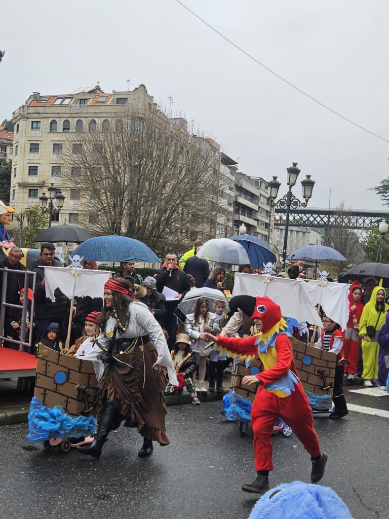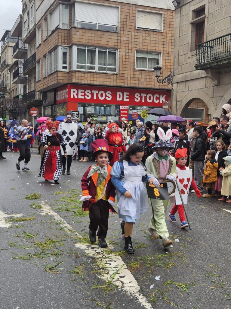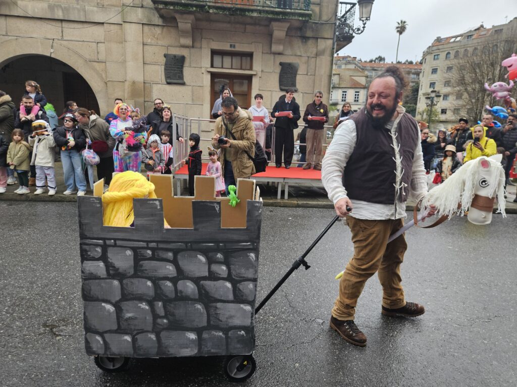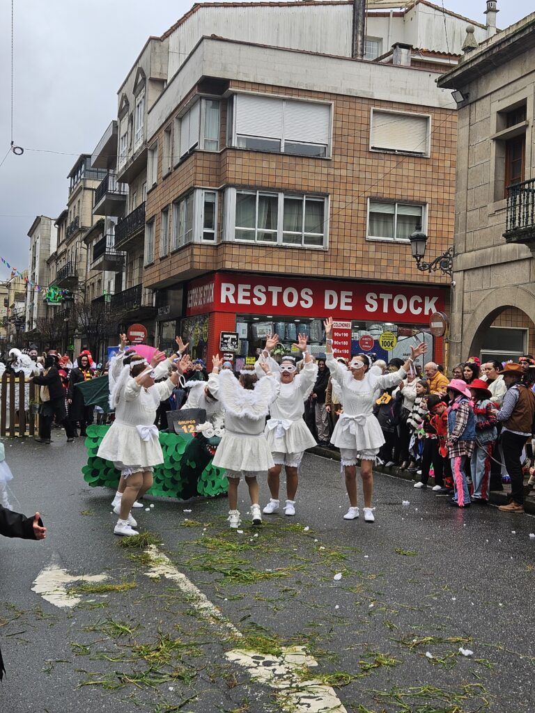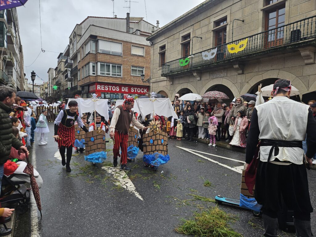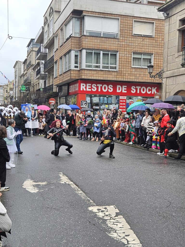 O martes de Entroido, Redondela celebrou un dos días centrais da festividade, cunha xornada marcada pola participación masiva de veciños e veciñas de todas as idades. O programa comezou ás 16:00 h coa apertura de inscricións nos soportais do Concello. Ás 17:00 h deu comezo o Desfile-Concurso de Disfraces, que contou con dúas modalidades principais: individual e colectiva (incluíndo parellas e grupos). O percorrido encheu de cor e creatividade as rúas do centro, mentres que na Alameda Castelao se desenvolveron talleres infantís entre as 17:00 e as 19:30 h. Paralelamente, o grupo de percusión e pandereteiras Aperta achegou ritmo e animación ás rúas.