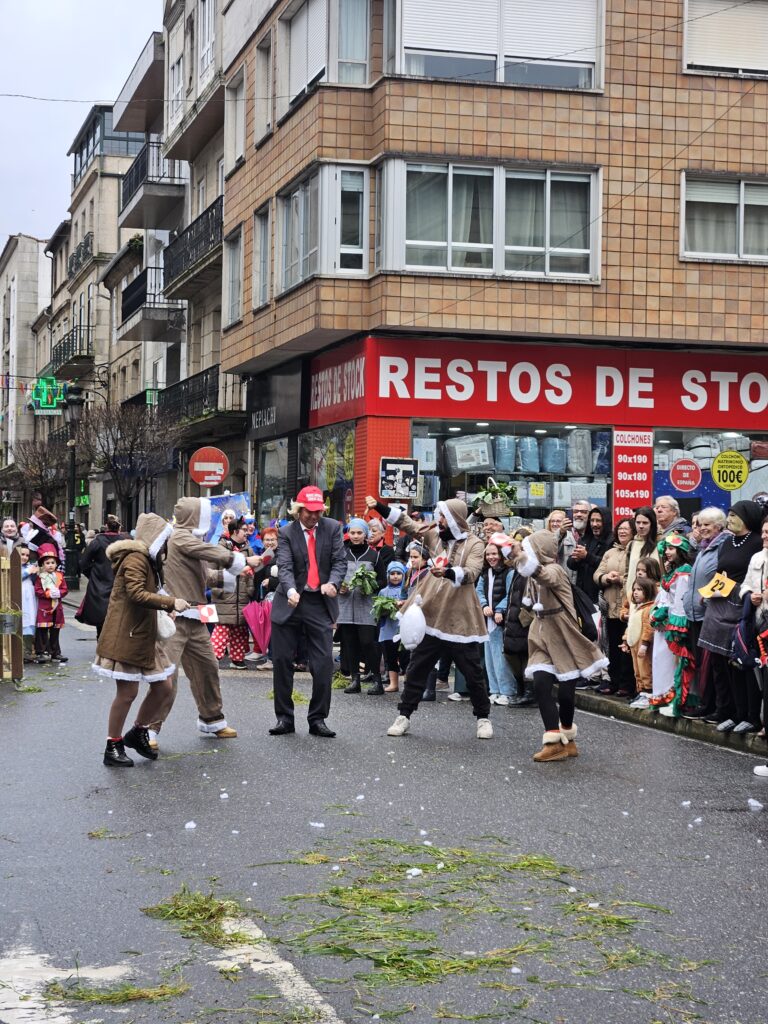 Esta xornada do Entroido de Redondela volveu demostrar, como cada ano, o poder da festa para unir á comunidade arredor da creatividade, da tradición e da ilusión compartida. Ás 19:30 horas comezou o acto máis simbólico da xornada: a queima do Meco, presentada por Tatán de Tanxarina. Tras un emotivo discurso sobre a memoria colectiva, prendeuse lume á figura elixida para este 2026: Donald Trump, poñendo así o broche final a unha tarde chea de emoción e simbolismo.