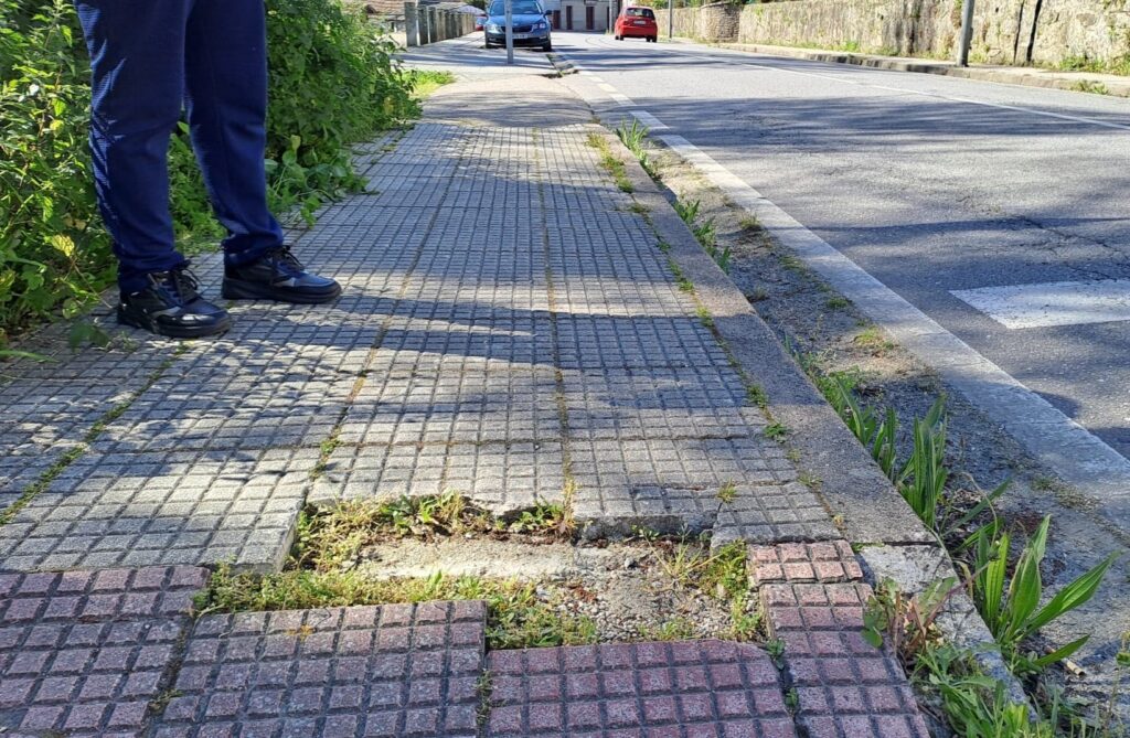 Explican que o estado das beirarrúas é un dos puntos máis críticos con “numerosos tramos con baldosas rotas, desprazadas ou con desniveis”. Unha situación que xa ten provocado caídas de veciños e veciñas, con consecuencias especialmente graves para persoas con mobilidade reducida. Advirten tamén da existencia de “curvas perigosas que supoñen un risco tanto para o tráfico rodado como para os peóns”.