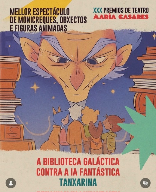 O último espectáculo da compañía redondelá recolleu o galardón na gala dos XXX Premios de teatro María Casares celebrada este mércores no teatro Rosalía de Castro da Coruña. A obra Reconversión da compañía Ibuprofeno Teatro foi a gran triunfadora ao facerse cun total de seis galardóns, mentres que A Biblioteca Galáctica contra a IA Fantástica de Tanxarina recibiu o premio como mellor espectáculo de monicreques. A súa representación poderémola ver en breve no noso concello xa que será a encargada de abrir a programación de sala do Festival de Títeres.