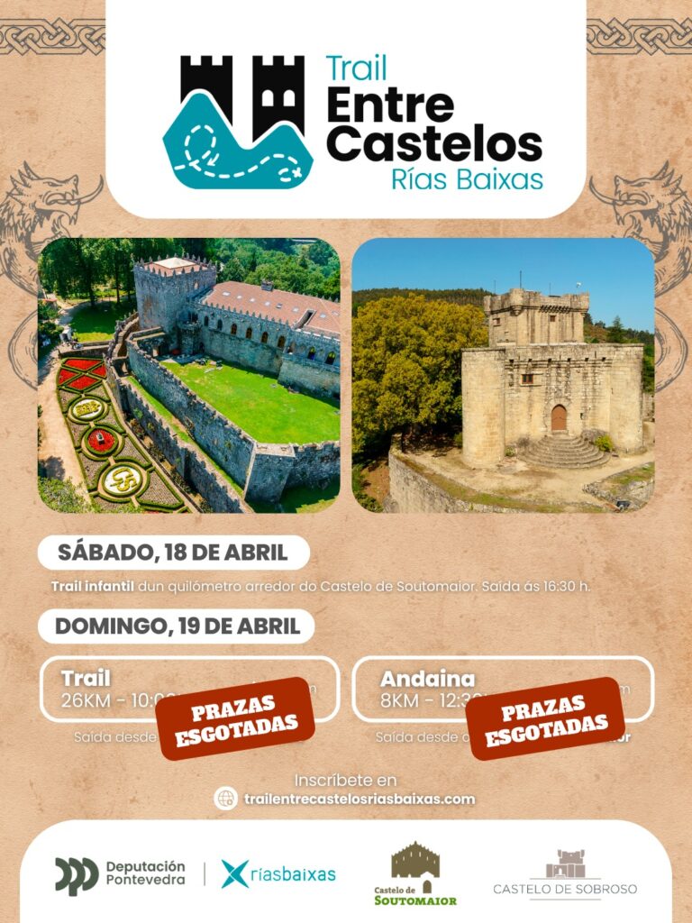 A Deputación de Pontevedra organiza esta fin de semana o Trail Entre Castelos Rías Baixas. O programa arrancará na mañá do sábado coa recollida de dorsais no Castelo de Soutomaior e unha sesión de actividades infantís, o trail no que participan 75 nenas e nenos e a conferencia do triatleta Pablo Dapena. Pola súa banda, o domingo arrancará ás 10:00 horas o trail desde o Castelo de Sobroso, con 500 persoas inscritas e unha andaina arredor do Castelo de Soutomaior na que se darán cita outras 200 persoas.