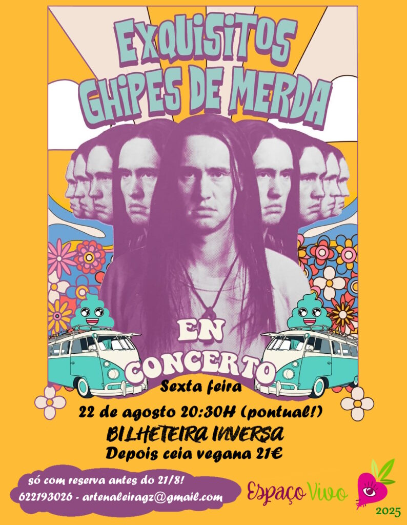O venres 22 de agosto ás 20:30, chegará a quenda dos Exquisitos Ghipes de Merda, unha banda irreverente formada por Iago “O sopra tubos”, Tarakanov “O Bardo Bass-tardo”, Manu “A Citola do demo” e Mighelón “O Runchos Mach Ghuan”. Co seu estilo único, que combina tradicións europeias cun toque contemporáneo, abordan temas como o amor, a liberdade e a conexión coa natureza morta. As súas letras profundas e a súa enerxía en directo prometen unha noite vibrante, celebrando a creatividade e a diversidade cultural.