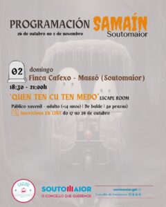 As inscricións están abertas en liña desde o pasado 17 de outubro ata o 22. Esta actividade é o primeiro evento da Semana do Samaín en Soutomaior que se prolongará ata o 2 de novembro con máis sorpresas temáticas.